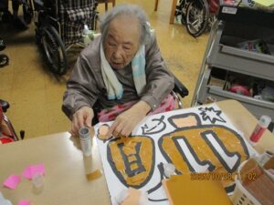 今日の優・悠・邑 2025.10.22 ぬり絵 今日は朝から冷たい風が吹き、寒い一日でした。 11月のバイキングは、「すしざんまい!」ということで、お寿司のぬり絵をお願いしました。 皆さん「今度はお寿司なの?楽しみね。」と、うれしそうにお話されていました。 思い思いに好きな色や本物に似せたり塗ってみえました。 月に一回のバイキングで、お寿司ということもあり、とても楽しみにされています。