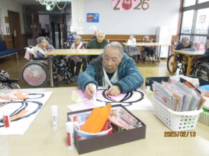 今日の優・悠・邑 2026.2.13 ぼんぼり 今日は晴れましたが、やはりまだまだ寒い1日となりました。 皆でテレビを見ながら、ちぎり絵をはったり、お話ししたりと過ごしました。 ひなまつりも今から楽しみですね。