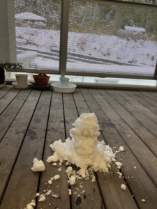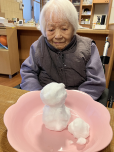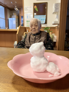 今日の優・悠・邑 2026.1.27 ゆきあそび 今日はとっても寒い日でした。 朝、外に残る雪で雪だるまを作りました。 雪をとりに行くときに「大雪やな、寒いわ。」と、楽しそうにされていました。 あたたかいフロアの中で「つめたいな。」と笑いながら、雪だるまをつくりました。 何日もつか、楽しみです。