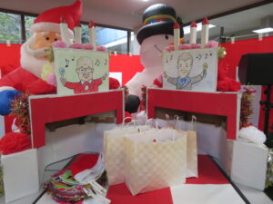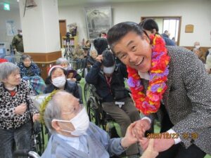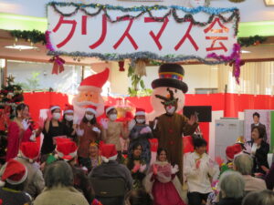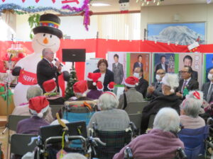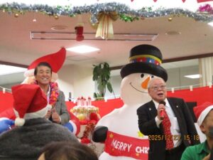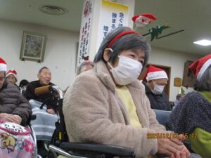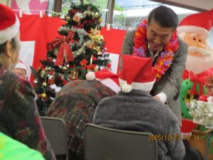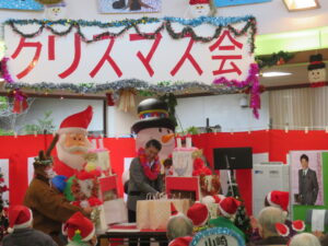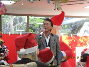 今日の優・悠・邑 2025.12.23 クリスマス会 今日は午後からクリスマス会があり、「山崎ていじショー」が行われました。 みんさんプロの歌手の歌声に、「やっぱり、うまいなぁ。」と言われ、元気にうちわを振って応援されたり、一緒に歌われたりと、とても盛り上がりました。 ショーが終わると、「楽しかった!」という声がたくさん聞かれました。