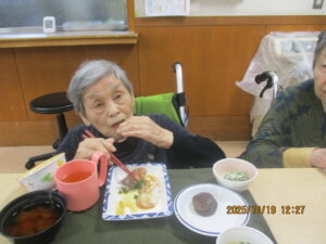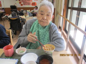 今日の優・悠・邑 2025.10.19 バイキング・ジョイントコンサート 今日の昼食はバイキングがあり、午後からはジョイントコンサートがあり、盛りだくさんの一日となり、天気は時折雨が降って、少し肌寒く感じる日でした。 月に一度のバイキング、今須産のしいたけがふるまわれ、七輪で焼きしいたけにて提供。フロアには香ばしい香りが広がり、皆様には大変好評でした。 ジョイントコンサートにも参加して、高木様、理事長、施設長の歌を聴き、楽器、手拍子などされて楽しんでみえました。本日もありがとございました。
