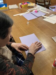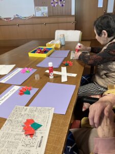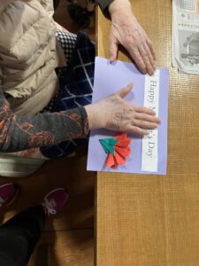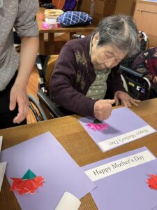 今日の優・悠・邑 2026.4.21 メッセージカード作りと鯉のぼり 朝は雨が降って今朝は寒かったですが、次第にとてもいい天気になりました。 母の日のメッセージカードを作りました。きれいな花ができたねとおっしゃりながら貼っていきました。 鯉のぼりも飾ってみました。きれいな柄だねと話されて、もうすぐバイキング! テーマは新緑こどもの日。楽しみですね。