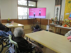 今日の優・悠・邑 2026.3.12 ラジオ体操 今日は良い天気でしたが、風が少し寒い日でした。 入居者様と一緒に大きなテレビで体を動かして、楽しくラジオ体操を行っていただきました。 終わると「体を動かすと、気持ちがいい。」と言っておられました。 施設の中で日向ぼっこをしました。 外を見ながら、「何かいる?」と、一生懸命見られていました。 もう少し暖かくなったら、散歩へ行く機会を増やしていきたいと思います。