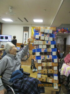 今日の優・悠・邑 2025.10.25 レクリエーション 今日も一段と寒い日でした。そこで。午後から入居者皆さまでジェンガをして遊びました。 「崩れるぞー」「ここならどうや」など、皆様一生懸命やって下さり、とてもにぎやかなものになりました。 また、入居者様が楽しんで頂けるようなレクリエーションをしたいと思います。