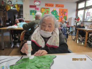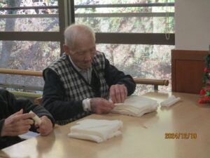 今日の優・悠・邑 2025.12.20 一日の過ごされ方 今日も寒い日でした。 皆さん、自分のペースで過ごされていました。 テレビを見たり、ちぎり絵をされたり、サルバタオルをたたんだり、楽しそうに過ごされていました。 とてもうれしそうな表情をされていました。