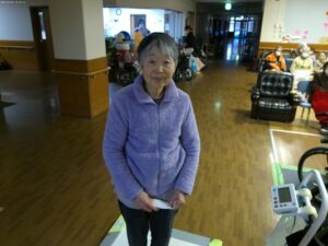今日の優・悠・邑 2026.4.4 体重測定 本日は、曇り空で雨も降りだし、風もあって肌寒く感じる一日でした。 皆さん体重計に乗られて、体重を測りました。 少し増えたり、減ったりしていましたが、大きく変わった人はおられず、安心されていました。 また来月も体重測定はありますが、体調にお変わりないように気をつけていきましょう。