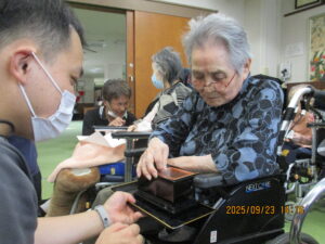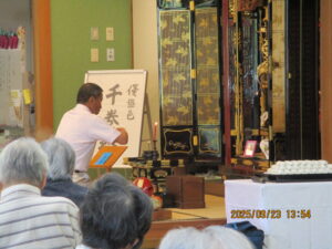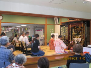 今日の優・悠・邑 2025.9.23 千巻経 敬老週間最終日 今日は千巻経が行われました。 入居者・利用者様 静かにお経をとなえられてみえました。 お焼香もされ、なれた手つきでしてみえました。 おやつには、お供えのお饅頭をいただいていただき、皆様満足そうに召し上がってみえました。 今日で敬老週間も終わりました。来年も皆さんに喜んでもらえるように取り組んでいきたいと思います。 さて10月は、なんのイベントがありますかね?お楽しみに。
