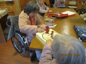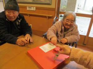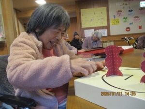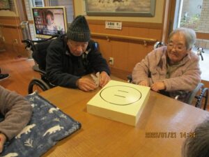 今日の優・悠・邑 2026.1.21 寒い 冬はとても寒いですね。 日が出ているときに、入居者様と散歩に行きました。 入居者様と自分の第一声が「寒い。」でした。 池を見てみると、こおりかけており、より寒さを実感します。 だいぶ雪が解けかけていますが、また雪が降るとか降らないとか、風邪をひかないように気を付けます。 午後から紙相撲をしました。両者ともなかなか倒れず、いい勝負でした。