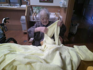 今日の優・悠・邑 2025.10.5 懐かしい唄 今日は昨日から雨が降り朝はとても冷え込み寒く感じられる1日でした。 入居者様とは懐かしい童謡を聞きながら口遊んでいただき「昔はよく歌っていたわ」と話していただいたり、今月行われるハロウィンの飾りを見ていただき「これは何?」と聞かれる方も多いですが楽しい行事ですよと話すと楽しみだねと笑顔を見せていただけました。昼からは一緒に洗濯物をたたんで頂いたりして過ごしていただきました。