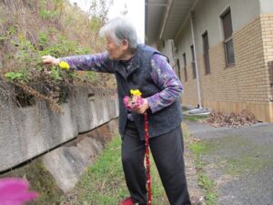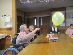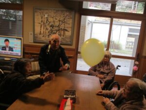 今日の優・悠・邑 2025.11.27 散歩とボールのゲーム 今日は、はじめ天気が良かったですが、風が冷たい日でした。 回診で、コロナワクチン接種がありました。 昼食は混ぜご飯で、おいしそうに召し上がられました。 午後は、散歩に行きました。「花がきれいに咲いていますね。」と言われました。 また、池の中の鯉を楽しそうに見られていました。 フロアでは、みんなで一緒にボールを投げるゲームをやりました。 皆さん、元気に参加されました。 洗濯ものを畳んだり、テレビを見たりして、元気に過ごされてみえます。