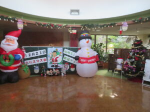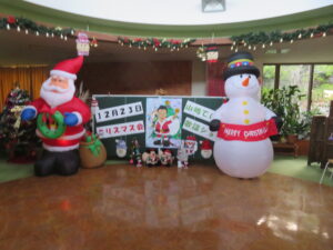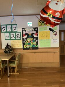 交流スペースのクリスマス会の飾りも、きれいにできてきています。