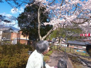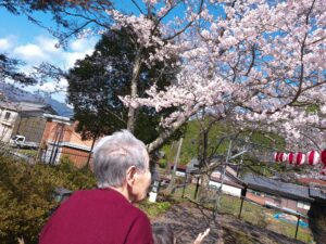 今日の優・悠・邑 2026.4.2 散歩 今日は風は吹いていましたが、日差しが暖かい一日になりました。施設の玄関前の桜が満開になっていたので散歩に行きました。 「きれいに咲いているね」「うわーきれいやわ」など笑顔で桜を見上げ喜んでおられました。 暖かい日が増えている中、また散歩に出かけ季節を感じていただきたいと思います。