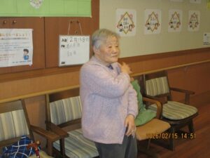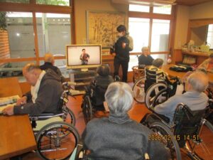 フロアの方では体操して、身体を動かしました。皆さん一所懸命手足を動かしてみえ