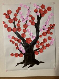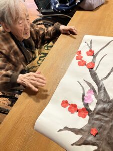 今日の優・悠・邑 2026.2.26 明日はバイキング 明日はひな祭りバイキングです。 フロアの壁面にもひな祭りの飾りやバイキングメニューが掲示されています。 入居者様にひな祭りの思い出について尋ねたりして 「ちらし寿司、お刺身がすきやでなぁ」と明日のバイキングを楽しみにされています。 梅の花の壁面飾りを製作しました。フロアの方も春らしくなってきました。