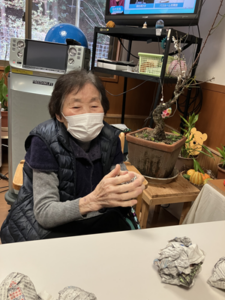 今日の優・悠・邑 2026.2.2 明日は豆まき 本日は寒い一日でしたが、利用者様と一緒に、節分の豆まきに使用する豆の準備を行いました。 利用者様に新聞紙をまるめていただき、豆を作りました。 皆さん楽しそうに参加されていました。