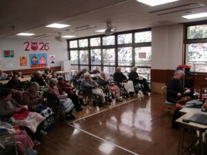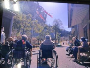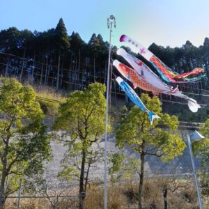 午後は、春らしく暖かくなってきました。昨日より元気に泳いでいる鯉のぼりをみなさんで見学、春を満喫されていました。