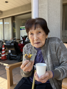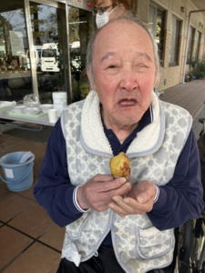 今日の優・悠・邑 2025.12.11 焼き芋 今日は肌寒く、木の葉が静かに落ちていました。 焼きあがった焼き芋の、甘い香りがふわっと広がります。 入居者の方々は、ポケットで手を温め、湯気の立つお茶を飲みながら焼き芋を一口。 やさしい甘さが広がり、心までほっと温まっていただきました。