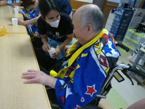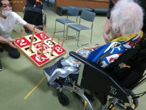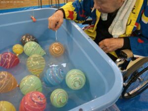 今日の優・悠・邑 2025.10.16 秋祭り 今日、1年に一度の秋祭りが行われました。 射的、輪投げ、風船釣り、焼き芋、ポップコーン、綿菓子と、たくさんの催し物を楽しまれていました。 風船釣りでは、釣り上げた風船を自慢げに見せたり、射的がうまく当たると、皆様から拍手が起こっていました。 焼き芋もおいしくて「あま~い」と、とても喜んでみえました。 綿菓子を「おいしい、おいしい。」と食べている方も見えました。