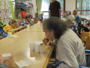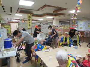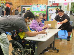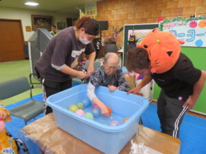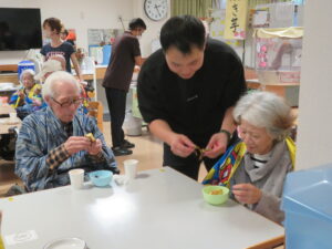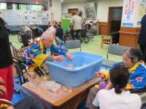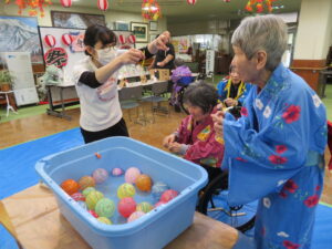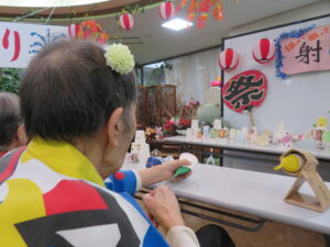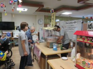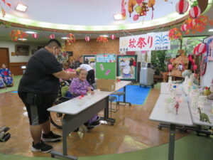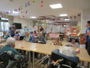 今日の優・悠・邑 2025.10.16 秋祭り 開催!! 昨日のデイサービスに続き、今日は入居の方、ショートステイ利用の方に向けた「秋祭り」開催ですっ!! 輪投げに・・・ 射的(まとあて)・・ ヨーヨーすくい・・ 食べ物はというと・・ 綿菓子・ポップコーン・焼きいも!! 大いに遊んで、食べて、飲んでいただきました~っ!! 楽しんでいただき何よりです!! ありがとうございました!!