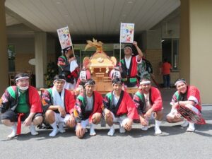 今日の優・悠・邑 2025.9.7 秋祭り告知、神輿!! 9月14日に行われる、秋祭りの告知もかねて地域の方に神輿を担いでまわってきました。 暑い日でしたが、多くの職員が参加してくれました。 施設近くにある八幡神社にまずはいき、お参り。 「わっしょい・わっしょい」のかけ声にあわせて出発しました。 最初は、元気はなかったのですが、時間がたつにつれて慣れてきたのか、地域の中に 「わっしょい・わっしょい」と大きな声が響くようになっていました。 職員の皆様、暑い中ご苦労様でした。まだまだ14日~の準備等が大変ですが、頑張って!!