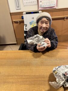 今日の優・悠・邑 2026.1.29 節分にむけて・・ 今日は朝から雪が降り寒い一日でした。 2月3日の節分にむけて、豆まきの準備をしました。 「これで何を作るの」「大きなのができたわ」と楽しみながらいってもらえました。 外はあっという間に、真っ白になってきてiいます。さてさて積もりますかね。