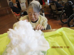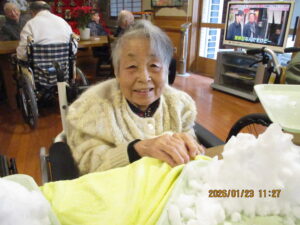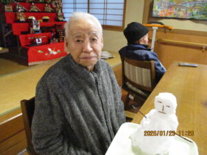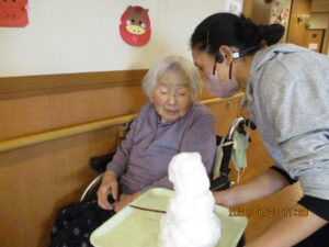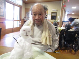今日の優・悠・邑 2026.1.23 雪だるま 雪が降り続き、今朝も外は真白でした。寒いですが、雪をフロアのもっていくと 「わぁぁ…」と笑顔がみられました。見るだけでも、寒さ感じますね。 そのまま、入居者様と一緒に雪だるまを作りました。 かわいい雪だるまができました。 梅しそのジュースいただいたので、いつもと違う味のジュースを飲んでいただきました。 すっぱくて美味しかったと好評でした。