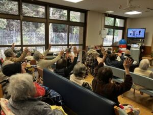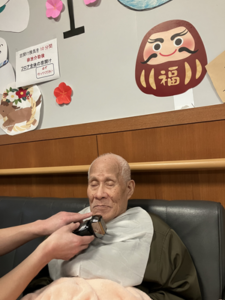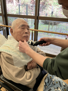 今日の優・悠・邑 2026.3.7 髭剃りと体操 午前中には、男性の入居者と利用者の方が髭剃りをされました。 そこそこ伸びておられる方が多く、最初はご自身で剃られ、その後職員が仕上げ剃りをさせていただきました。 スッキリされた後は、温かいタオルで顔を拭くと「気持ちがええわ。」とおっしゃっていました。 午後からはフロアにて、皆さん体操をされました。 TVの映像を見ながら、手をグーパーしたり、大きく腕を上げたりして、健康維持に努められました。