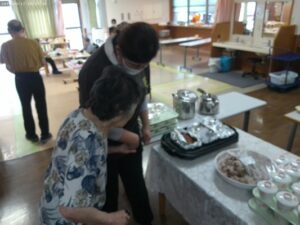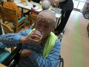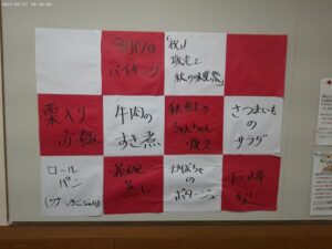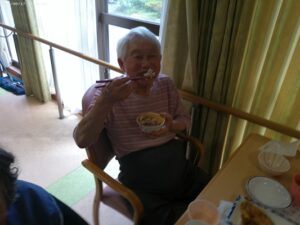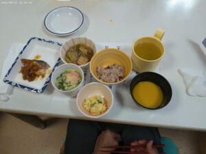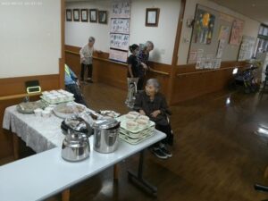 今日の優・悠・邑 2025.9.17 9月のバイキング 今日は、月に一度のお楽しみバイキングの日です。 今回は、「祝!敬老と秋の味覚祭!」というテーマで、栗入り赤飯や鮭のちゃんちゃん焼き、梨など、お祝いのメニューと旬の食材が並ぶ、豪華メニューでした。 秋の童謡をBGMに、みなさんおいしそうに召し上がられていました。 特に栗入り赤飯は好評で、おかわりをされる方が多数みえました。 来月もお楽しみに。