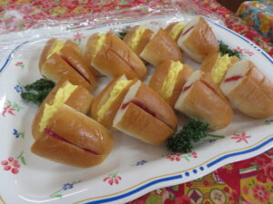 「ロールパンサンド(玉子・いちごジャム)」