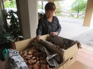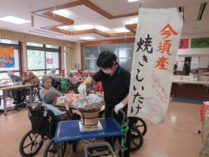 施設長に今須産しいたけを購入いただき、各フロアでは・・・・