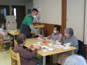 当日は施設周辺で自生していた花などをかごに盛り、各フロアへお届けしました。