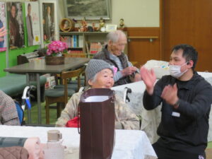 今日の優・悠・邑 2026.3.29 3月誕生会 一日暖かい日となり、桜も咲きだしているところが、多くみられるようになってきています。 午後からは3月生まれの方の誕生会の方をおこないました。 ご家族さんも参加されて、一緒にお祝いさせていただきました。 おめでとうございました。 さて、明日は3月のバイキングが行われます。 春の食材の天ぷら 施設の周り採れたものが多くあります。 みなさん、お楽しみに。