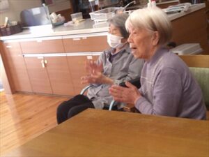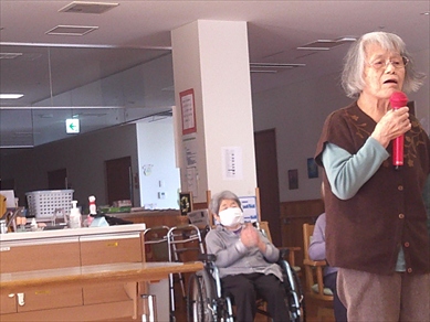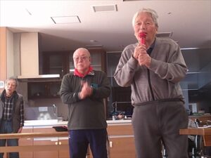 今日の優・悠・邑 和合 2026.4.8 カラオケ 本日のレクレーションはカラオケです。 理事長の歌唱力はさすがです。 皆様、歌に合わせて手拍子されます。 普段、聴いているだけの方が今日はマイクをお渡しすると前に出て「北国の春」を歌ってくださいました。 「この歌知ってる」「懐かしい」とマイクを持っていない方も一緒に歌を口ずさんでみえました。