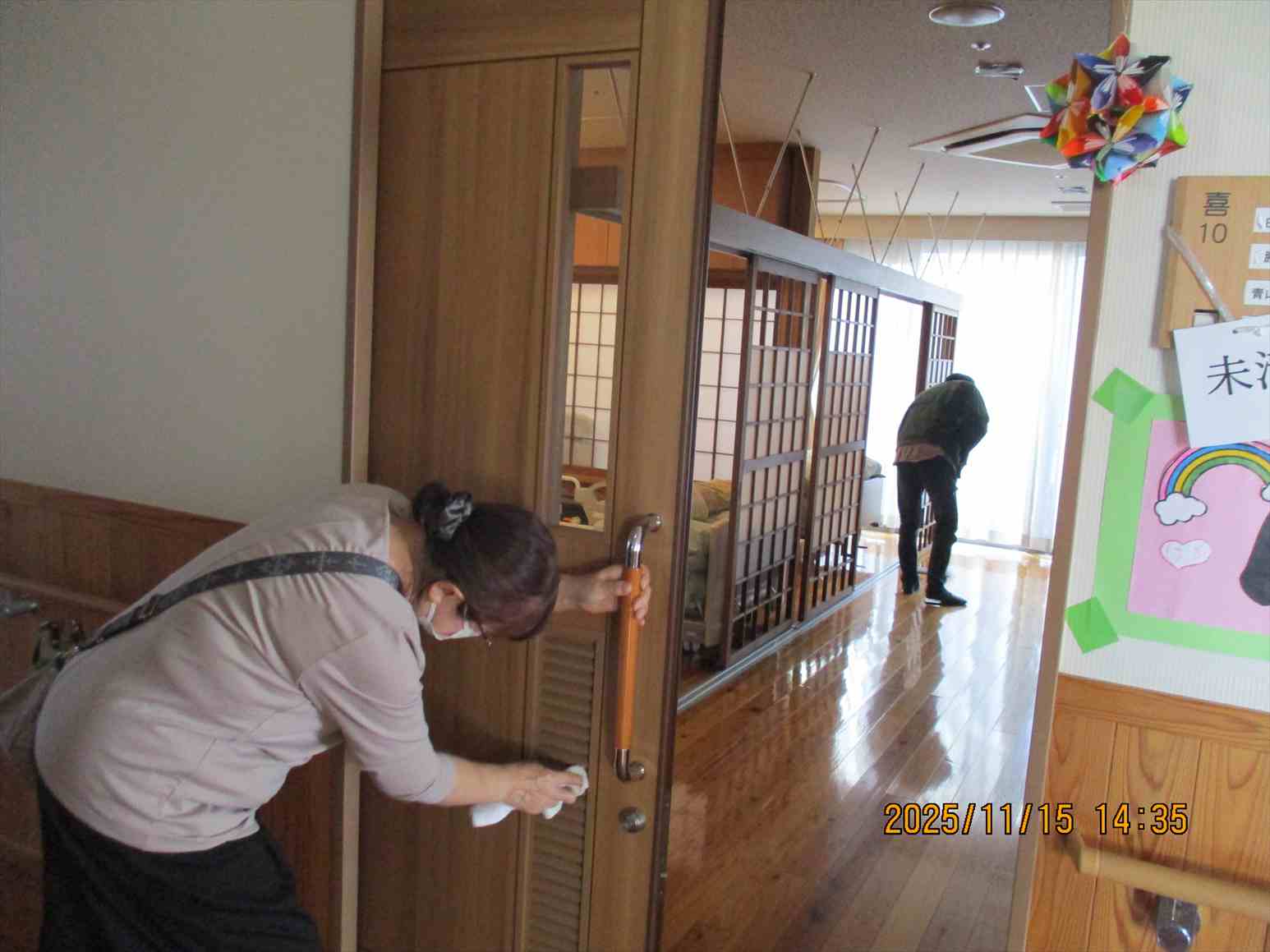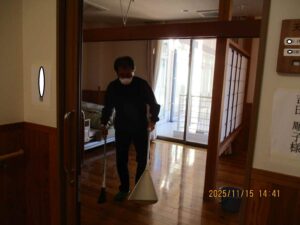 参加者の皆様にはご家族の居室の掃除やご家族以外の居室の床や廊下の掃除を行って頂きました。