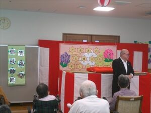 今日の優・悠・邑 和合 2025.9.22 「落語会」 本日は敬老週間の一環として「笑福亭伯枝師匠」による落語会が 10時から開催されました。 最初は話し声の大きさにびっくりされる方みえましたが、 話しや仕草・笑顔で入居者の方も大いに笑ったりと楽しまれていました。 また、30日には、敬老お茶会を予定しています。