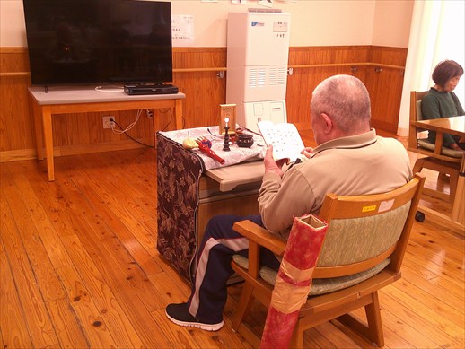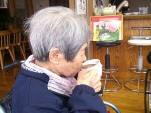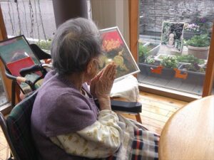 コーヒーを飲みながら手をあわせ、心安らぐひと時を過ごされていました。