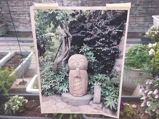 喫茶の1角に、お地蔵様の写真が飾られています。