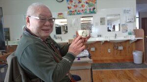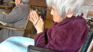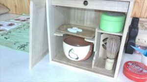 理事長のお参りが終わると新調したお茶碗でお抹茶を嬉しそうにたてて理事長に差しれされている入居者様がみえました。