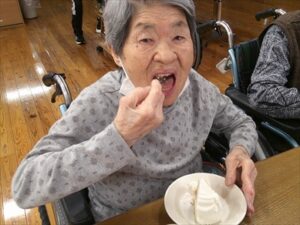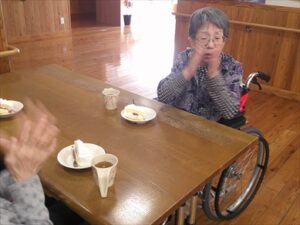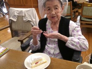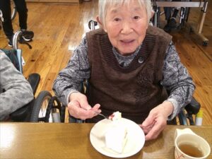 本日は、「家族会」から誕生日のケーキがおやつで提供されました。