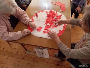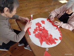 今日の優・悠・邑 和合 2026.1.19 ちぎり絵 何やら色紙をちぎって作成中の様子です。 皆さんあれやこれやとお話ししながら和気あいあいと作業をすすめてみえました。 何が出来上がるか楽しみです。 出来上がったらまたご報告できたらと思います。