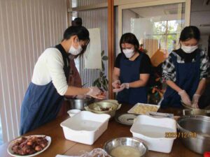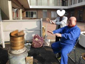 理事長が竈に盛り塩をして火入れから始まり、施設一同わいわいがやがや楽しい時間を過ごせました。