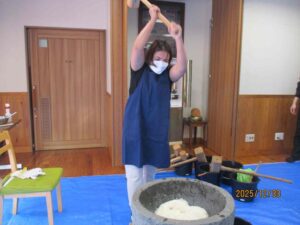 腰のあるとても美味しいお餅が四臼でき、黄な粉餅、あんこ餅、おろし餅でおいしくいただきました。やっぱり石臼と杵でついたお餅は絶品です。