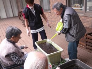今日の優・悠・邑 和合 2026.3.19 イチゴの苗植え $CoMmEnt«g春植えのイチゴの苗を園芸屋さんで見つけました。 さっそく、園芸クラブで育てることに。 本日は、作業療法士のリハビリを兼ねて3F の方と一緒に作業を行いました。 $CoMmEnt«g 土を手で混ぜたり、水をかけてこねたりと久しぶりに土に触れる ということがとても嬉しそうでした。 「いつ食べられるの」「早く食べれるように大きくなれ」と、 収穫を楽しみにしながら、作業は終わりでした。 甘いイチゴが沢山なるといいですネ。 前の記事 一覧へ 次の記事 アーカイブ 3月 2026 2月 2026 1月 2026 12月 2025 11月 2025 10月 2025 9月 2025 8月 2025 7月 2025 6月 2025 5月 2025 4月 2025 3月 2025 2月 2025 1月 2025 12月 2024 11月 2024 10月 2024 9月 2024 8月 2024 7月 2024 6月 2024 5月 2024 4月 2024 3月 2024 2月 2024 1月 2024 12月 2023 11月 2023 10月 2023 9月 2023 8月 2023 7月 2023 6月 2023 5月 2023 4月 2023 3月 2023 2月 2023 1月 2023 12月 2022 11月 2022 10月 2022 9月 2022 8月 2022 7月 2022 6月 2022 5月 2022 4月 2022 3月 2022 2月 2022 1月 2022 12月 2021 11月 2021 10月 2021 9月 2021 8月 2021 7月 2021 6月 2021 5月 2021 4月 2021 3月 2021 2月 2021 1月 2021 12月 2020 11月 2020 10月 2020 9月 2020 8月 2020 7月 2020 6月 2020 5月 2020 4月 2020 3月 2020 2月 2020 1月 2020 12月 2019 11月 2019 10月 2019 9月 2019 8月 2019 7月 2019 6月 2019 5月 2019 4月 2019 3月 2019 2月 2019 1月 2019 12月 2018 11月 2018 10月 2018 9月 2018 8月 2018 7月 2018 6月 2018 5月 2018 4月 2018 3月 2018 2月 2018 1月 2018 12月 2017 11月 2017 10月 2017 9月 2017 8月 2017 7月 2017 6月 2017 5月 2017 4月 2017 3月 2017 2月 2017 1月 2017 12月 2016 11月 2016 10月 2016 9月 2016 8月 2016 7月 2016 6月 2016 5月 2016 4月 2016 3月 2016 2月 2016 1月 2016 12月 2015 11月 2015 関連施設ブログ 今日の優・悠・邑 今日のえりかの里 今日の優・悠・邑 和合 今日の優・悠・邑 和