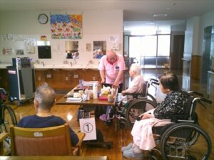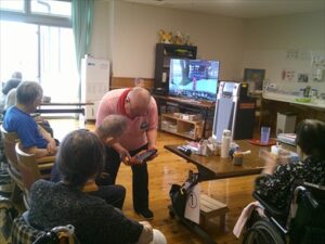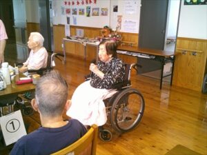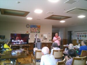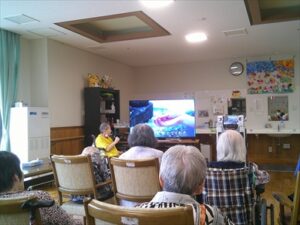 今日の優・悠・邑 和合 2025.9.24 カラオケ会 今日は少し曇りでしたが、雨は、降らず涼しかったです。 午後は、3階にて理事長と3階利用者でカラオケを行いました。 理事長が利用者様に歌いたい曲を聞き、入れてくださいました。 理事長が歌われる時や利用者様が歌われる時、 他の利用者様も一緒に歌われて、とても楽しい雰囲気でした。 カラオケが終わった後、「理事長さんは、歌がうまいな、また聞きたいわ」 と言われる利用者様が見えました。