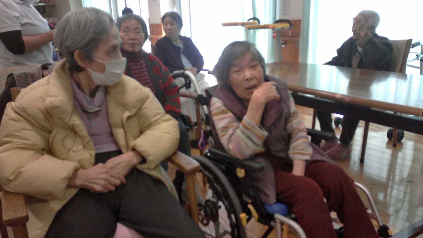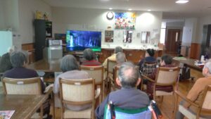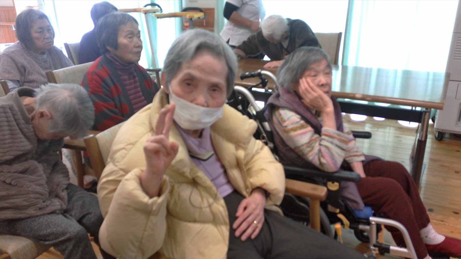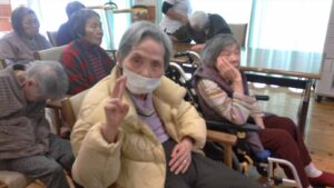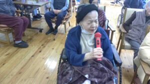 今日の優・悠・邑 和合 2026.1.26 カラオケ 今日は理事長とのカラオケを楽しみに皆さん食堂に集まっていました。 残念ながら理事長に急な用事が入り、理事長と一緒にカラオケはできませんでした。 利用者さんだけでカラオケを楽しみました。