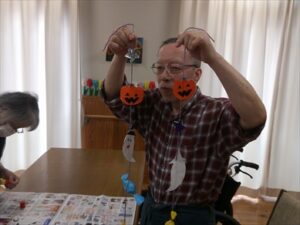 今日の優・悠・邑 和合 2025.9.29 ハロウィンの準備 本日は、皆様にハロウィンの飾りを作って頂きました。 まだ、完成ではないですが、オバケ、コウモリ、カボチャ アメ、リンゴ等がどんどん出てきました。 皆様、作業が細かいのにスムーズに進んでいます。 まだまだ、ハロウィンは先ですが、完成が今から楽しみです。