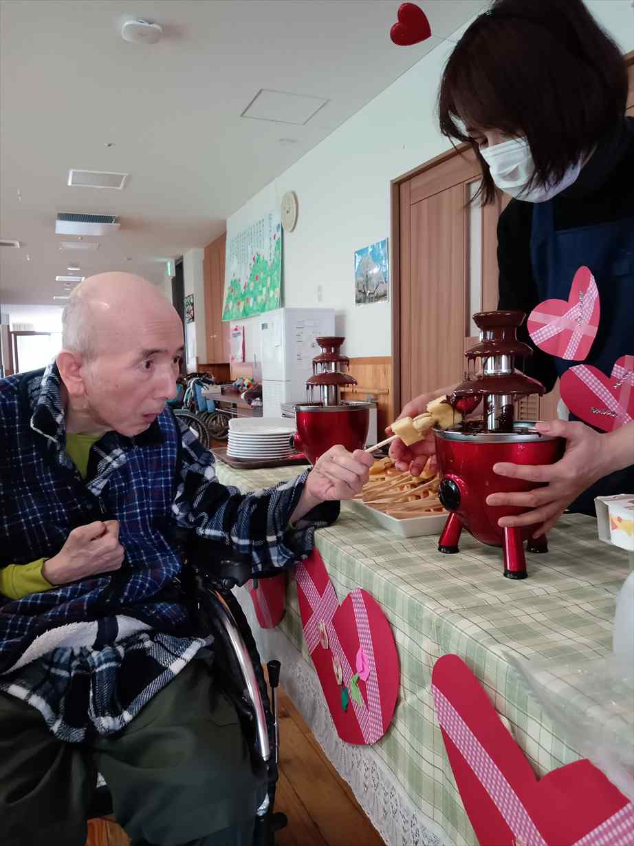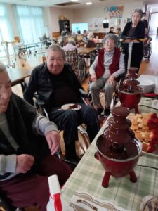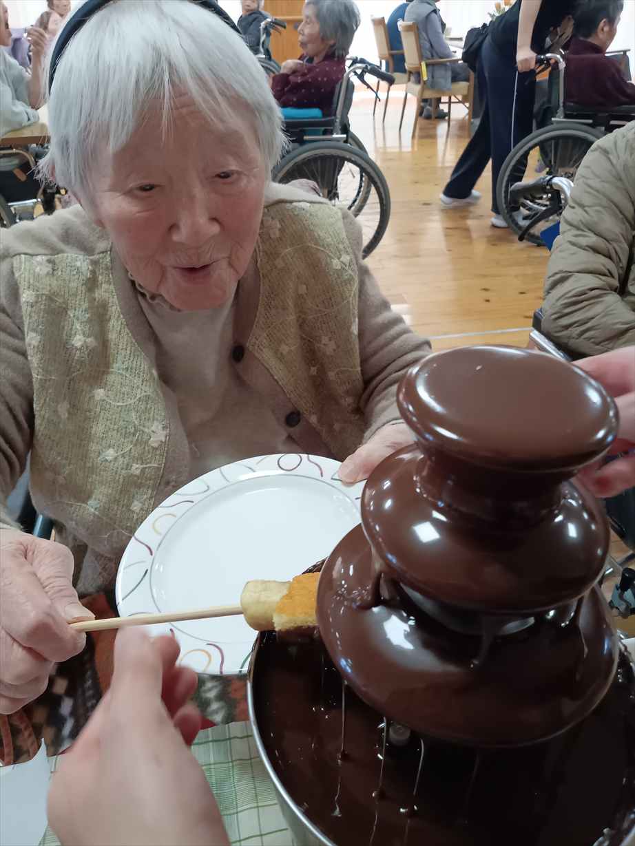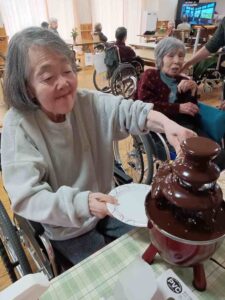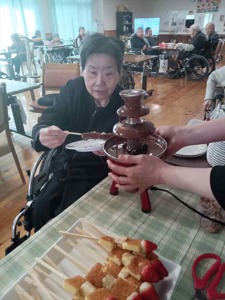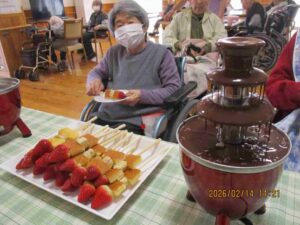 今日は皆さんお待ちかねのバレンタインチョコフォンデュがおやつの時間にありました。