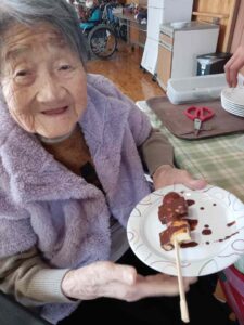甘い匂いがフロアに漂い皆さんの食欲が全開です、百一歳の方も美味しそうにペロッと召し上がられました。