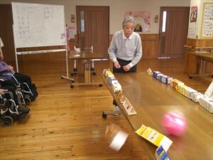 今日の優・悠・邑 和合 2026.3.2 今日はボーリングです! 今日は午後からボーリングを3回戦行いました。 「がんばれー」 と声援が飛んでいました。 「ボーリングはやったことがないわ」 とおっしゃられる方、どうやって投げようか迷っておられる方、様々です。 残念ながらストライクは出ませんでしたが、大きな笑い声が聞こえてきて、皆さん楽しまれてみえました。 次回はストライク目指してがんばるよ。