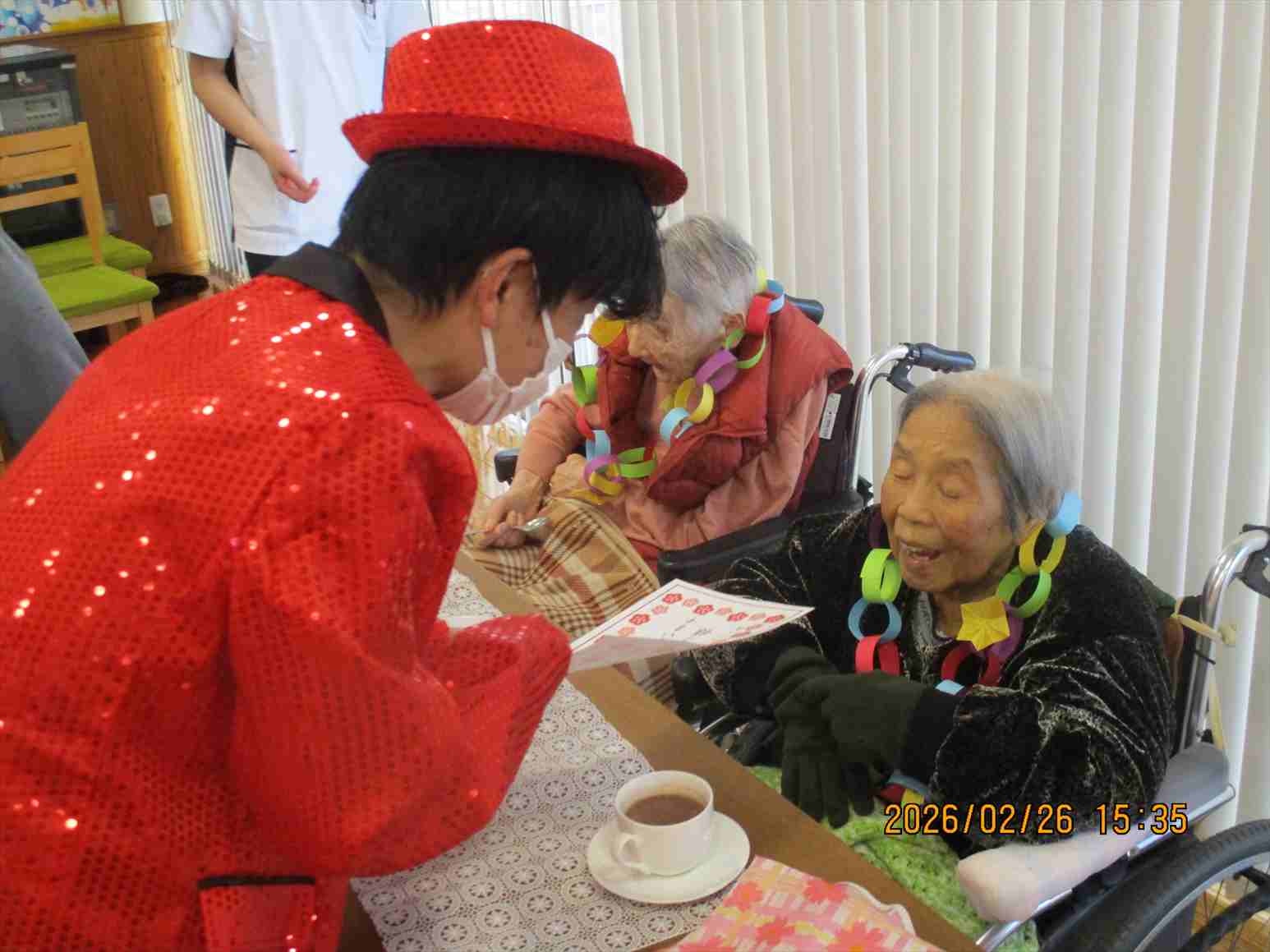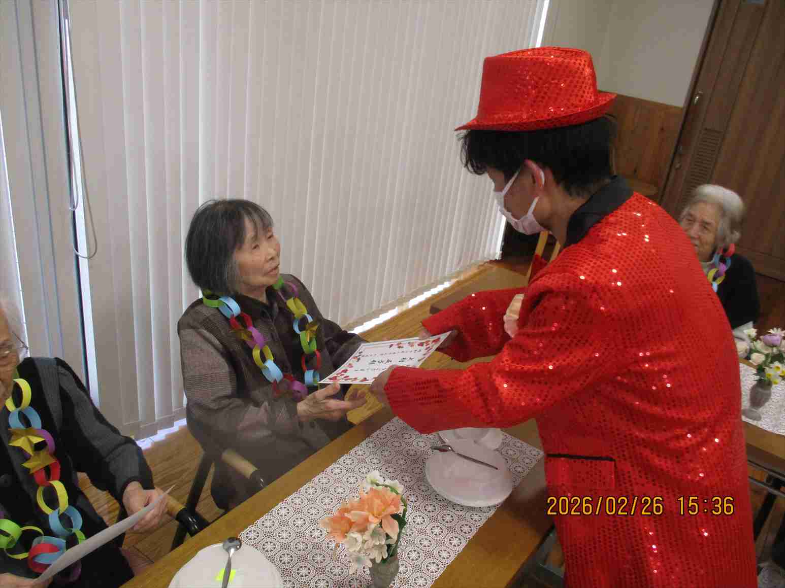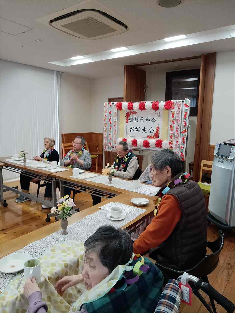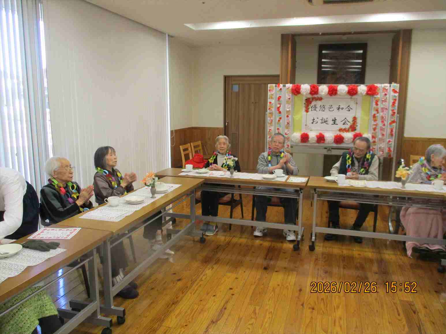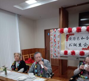 今日は今月お誕生日を迎えられた利用者様のお誕生会が多目的ホールでありました。